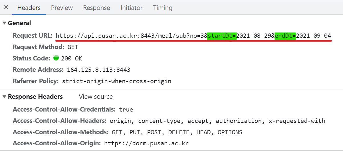 요청 url를 분석해보면 파라미터로 startDt & endDt를 조절하면 데이터를 특정지어 받아올 수 있다.