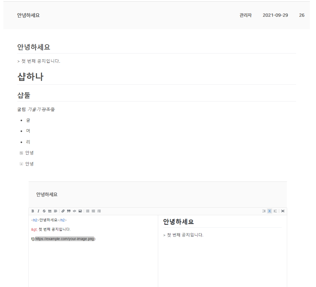 Markdown ์๋ํฐ๊ฐ ์๋ ๊ธฐ๋ฅ ํ๊ทธ ์์ ๋ด์ฉ์ ์ ๋ฌํด์ค๊ฒฝ์ฐ