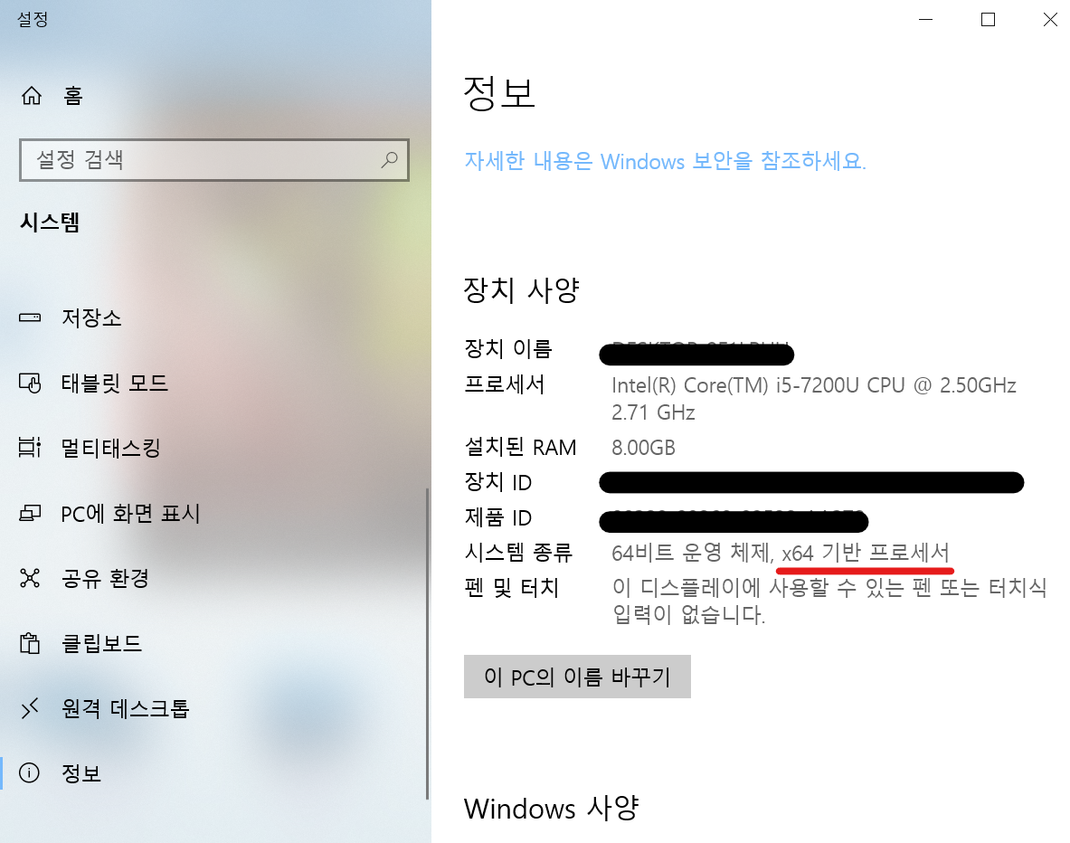 window์์ ๊ฐ์ธ ์ปดํจํฐ ์ฌ์์ ์์คํ > ์ ๋ณด์์ ํ์ธํ ์ ์๋ค.