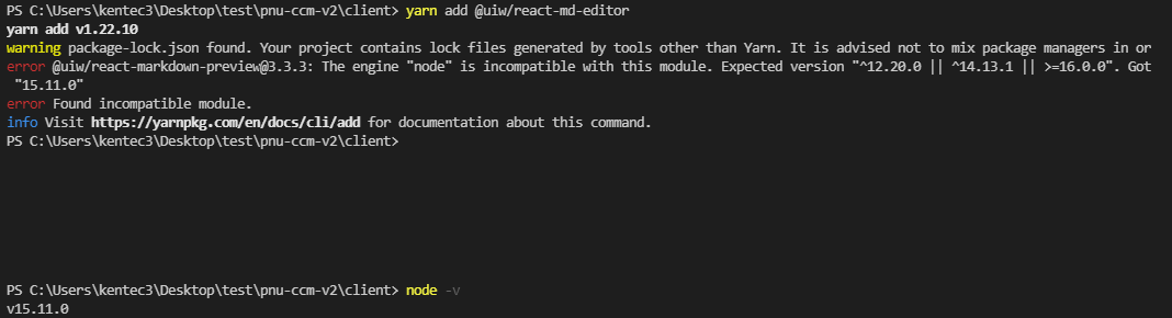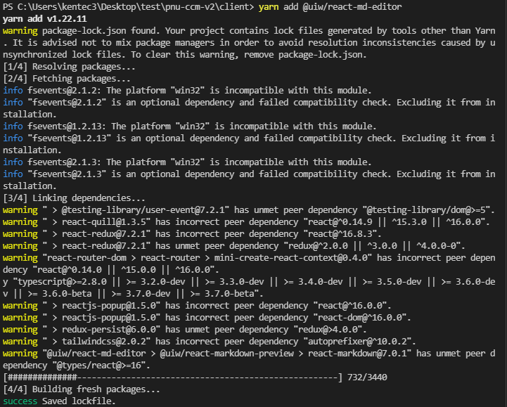 yarn add @uiw/react-md-editor ํ ์ค๋ก ๋ชจ๋ ๊ฒ ์ ์์ ์ผ๋ก ์ค์น๋์์ ๊ฒ์ด๋ค.