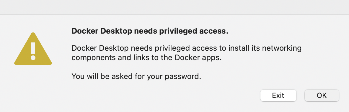 도커를 추출을 완료하면 생성된 아이콘을 더블 클릭해 접근 권한 및 약관 허용을 진행해주면 모든 작업이 끝납니다.