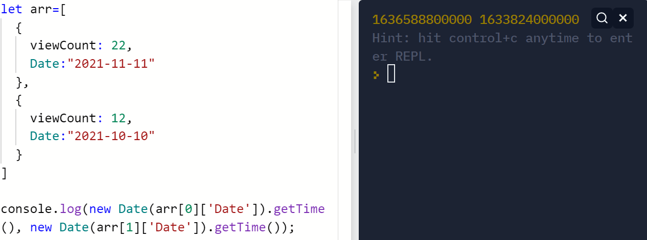 ๋ฌธ์์ด๋ก ์ ๋ฌ๋ ๋ ์ง ๋ฐ์ดํฐ๋ฅผ ์ ๋ ฌํ๊ธฐ ์ํด์ new Date( ).getTime( )๋ฅผ ํ์ฉํด ์ ๋ฌ๋ ์ผ์๋ฅผ ์ซ์๋ก ๋ณํํจ์ผ๋ก์จ ์์๋ฅผ ์ ๋ ฌํ ์ ์๋ค.