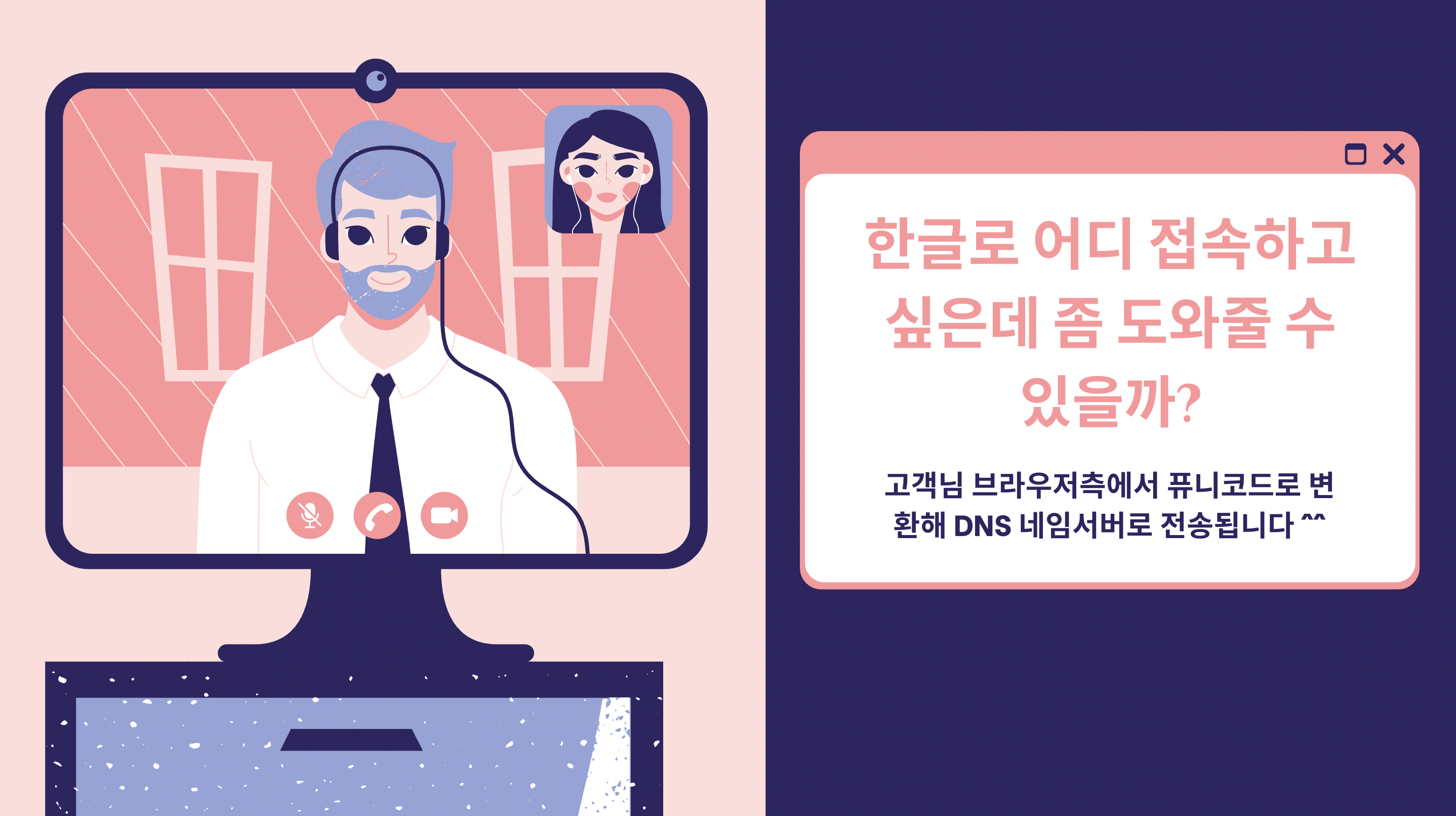 - 주소창에 다국어 도메인이 입력된다 (ex. 청와대.com)