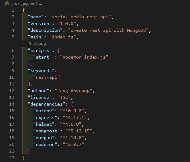 🐤 1-2. 생성된 package.json에 rest api에서 사용될 라이브러리들을 추가해준다.
