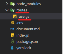 → routes 폴더를 만들어 user.js 파일을 생성한다.