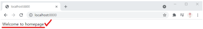 app.get("/", (req, res) => { res.send("Welcome to homepage"); }) - 포트 번호로 설정한 http://localhost:8800/ 로 접속 시 전송된 메시지를 확인할 수 있다 !